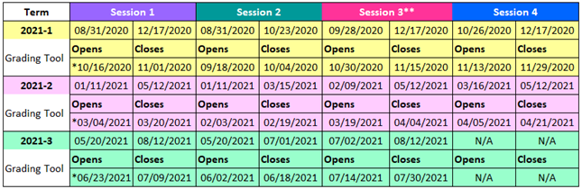 College Policy – Content must be loaded by noon on the day faculty return for Fall and Spring and two days before the Summer term. |