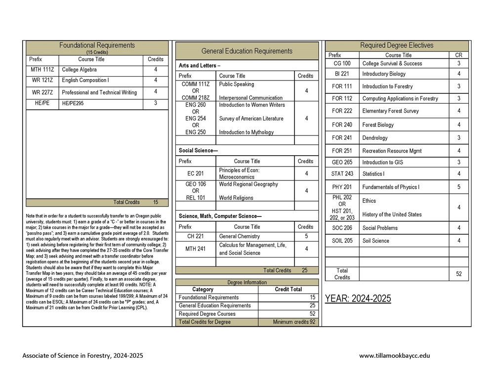 Associate of Science in Forestry = 91 credits