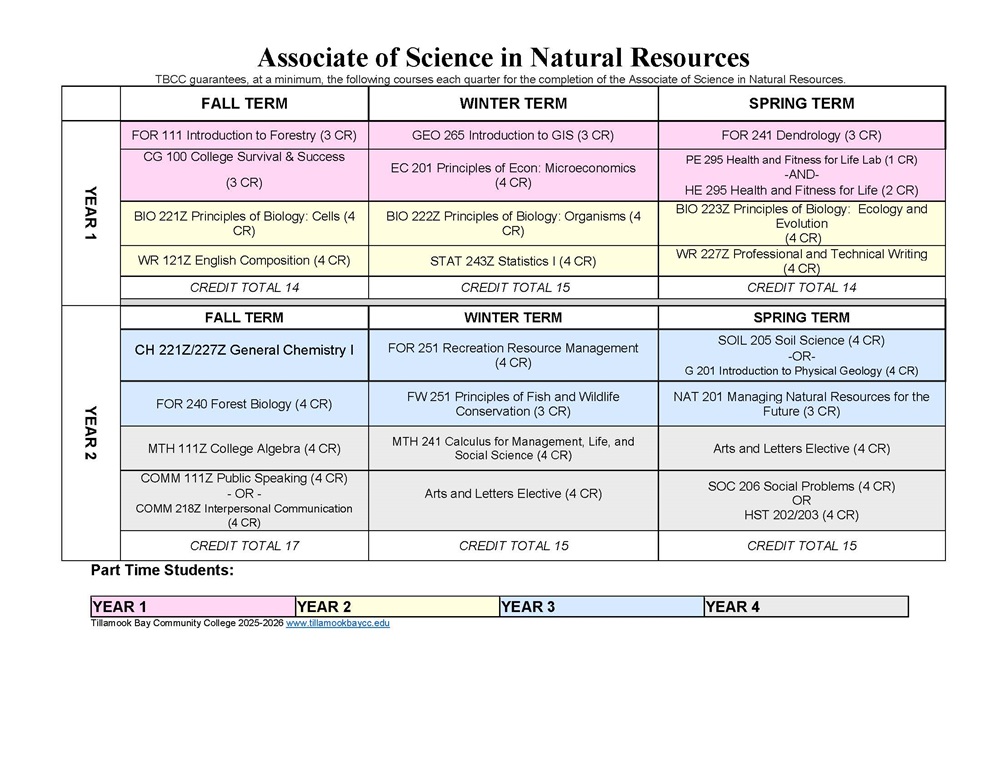 Upon completion of this degree, students should have completed all necessary prerequisite requirements to transfer to Oregon State University to complete a Bachelor’s degree in Natural Resources.