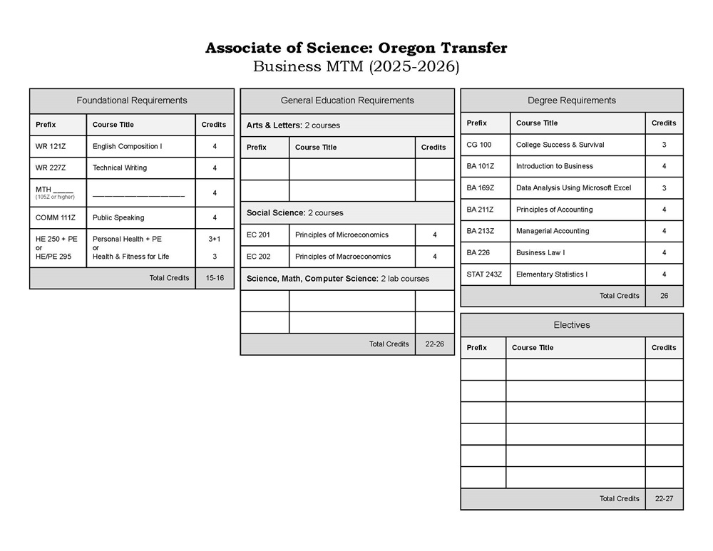 Associate of Science Transfer Business-MTM